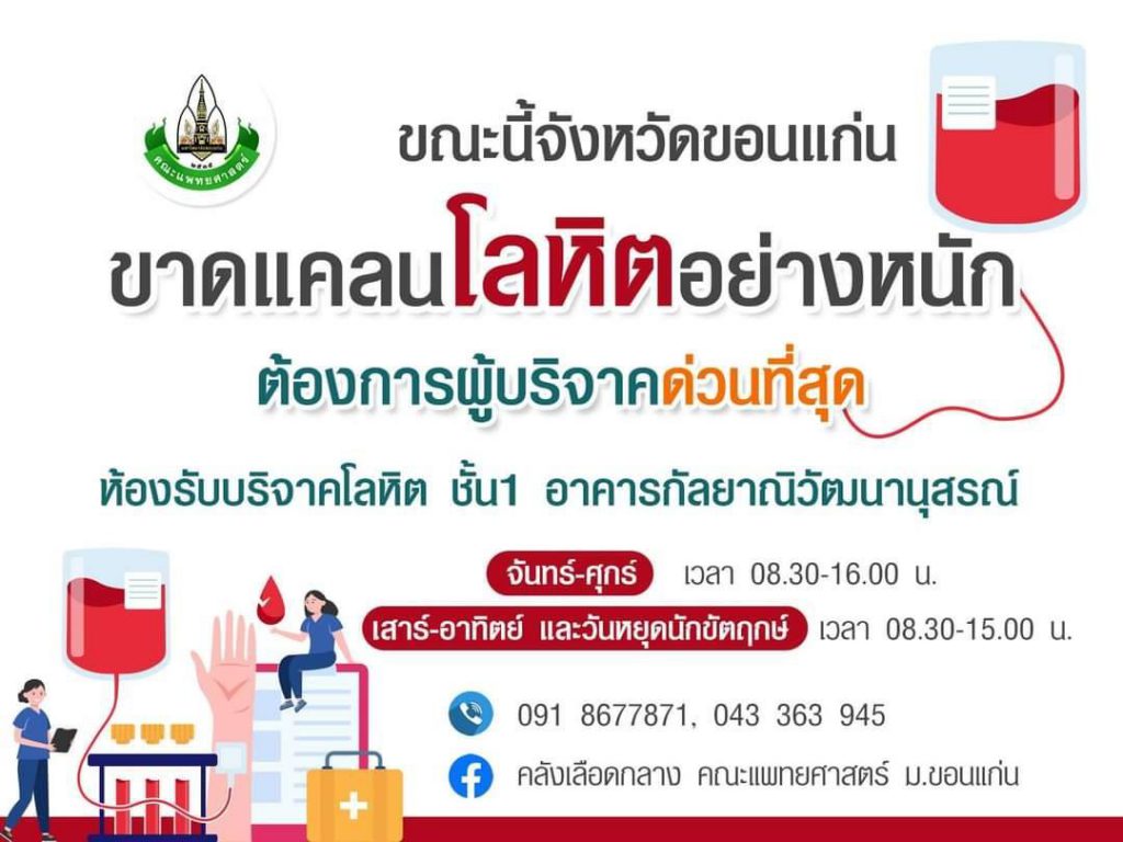 ที่ศูนย์คลังเลือดกลาง รพ.ขอนแก่น ดร.สมศักดิ์ จังตระกุล ผวจ.ขอนแก่น ในฐานะนายกเหล่ากาชาดจังหวัดขอนแก่น ได้ตรวจเยี่ยมด้วยความห่วงใย เนื่องจากได้รับข้อมูลจาก พญ.นาตยา มิลส์ ผอ.รพ.ขอนแก่น ว่าโรงพยาบาลต้องรับผู้ป่วยวิกฤติ 4 จังหวัด คือ ขอนแก่น มหาสารคาม ร้อยเอ็ด และกาฬสินธุ์ ขณะนี้คลังเลือดกลาง รพ. ขอนแก่น วิกฤตหนัก ปกติต้องมีเลือดในสต๊อก 200 ยูนิต ปัจจุบันนี้มีแค่ 150 ยูนิต ซึ่งแต่ละวัน รพ ขอนแก่นต้องใช้เลือดมากถึงวันละ 120 ยูนิต นายสุรสิทธิ์ สุทินฤกษ์ ประธานชมรมผู้บริจาคโลหิตขอนแก่น ได้กล่าวว่า สาเหตุที่ช่วงนี้คนมาบริจาคโลหิตน้อย อาจเป็นกังวลเรื่องการแพร่ระบาดของไวรัสโควิด ๑๙ จึงอยากเชิญชวนให้มาบริจาค ที่ รพ.ขอนแก่น ยังคงต้องการเลือดอีกจำนวนมาก และมีมาตรการป้องกันเป็นอย่างดี นายคณาธิป แสงปัดสา วัย ๓๐ ปี บริจาคเกร็ดเลือดที่ รพ.ศูนย์ขอนแก่น เป็นประจำเดือนละ ๒ ครั้ง บอกว่าอยากเชิญชวนทุกคนร่วมบริจาคเลือด เป็นการทำบุญที่ดีที่สุด ช่วยเหลือเพื่อนมนุษย์ด้วยกัน โลหิตทุกหยดของท่าน สามารถช่วยต่อลมหายใจของใครได้อีกหลายคน วิกฤตเดือดเลือดขาดที่ขอนแก่นวันนี้ จึงขอวิงวอนให้ผู้มีจิตกุศล หากท่านต้องการบริจาคโลหิต หรือบริจาคเป็นหมู่คณะ ท่านสามารถติดต่อขอบริจาคได้ที่ ศูนย์คลังเลือดกลาง รพ.ขอนแก่น โทร. 094 198 9329 ขอบคุณข่าว #prkhonkaen